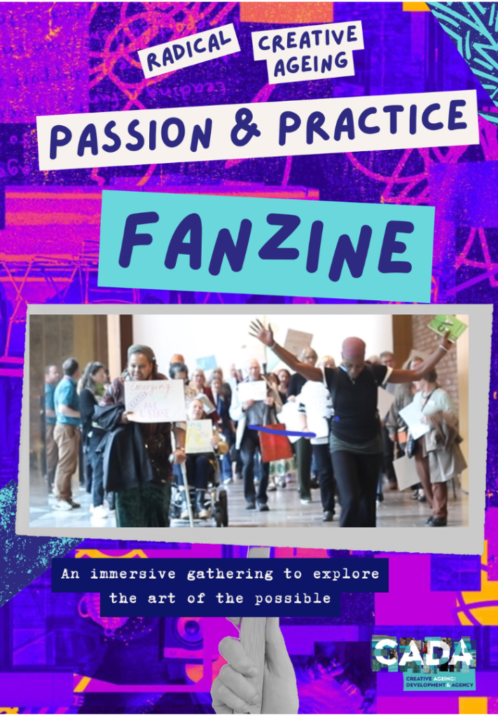 For this edition we focus on our recent event. Radical Creative Ageing: An Immersive Gathering was a partnership event between CADA, The Whitworth, and Artivists Group, co-created by our RUPT Associates, four older diverse creatives, recruited to disRUPT the status quo and explore the ‘art of the possible’ when it comes to creativity, diversity and ageing. See the event’s Fanzine here