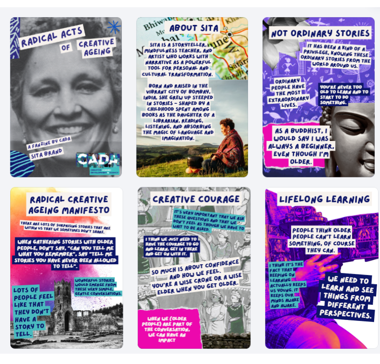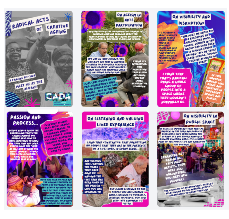 For this edition we focus on our recent event. Radical Creative Ageing: An Immersive Gathering was a partnership event between CADA, The Whitworth, and Artivists Group, co-created by our RUPT Associates, four older diverse creatives, recruited to disRUPT the status quo and explore the ‘art of the possible’ when it comes to creativity, diversity and ageing. See the event’s Fanzine here